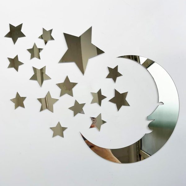 15 Stars And 1 Moon Silver Acrylic Wall Stickers