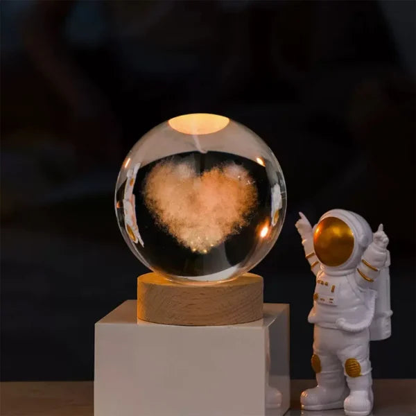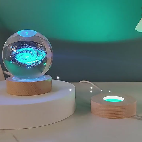 Crafted from high-quality K9 crystal and featuring intricate 3D laser engraving, this galaxy ball showcases the wonders of the universe. Illuminate its beauty with the included LED wooden base, powered by a convenient USB connection.