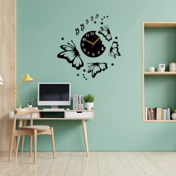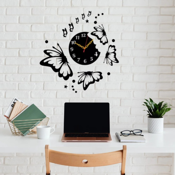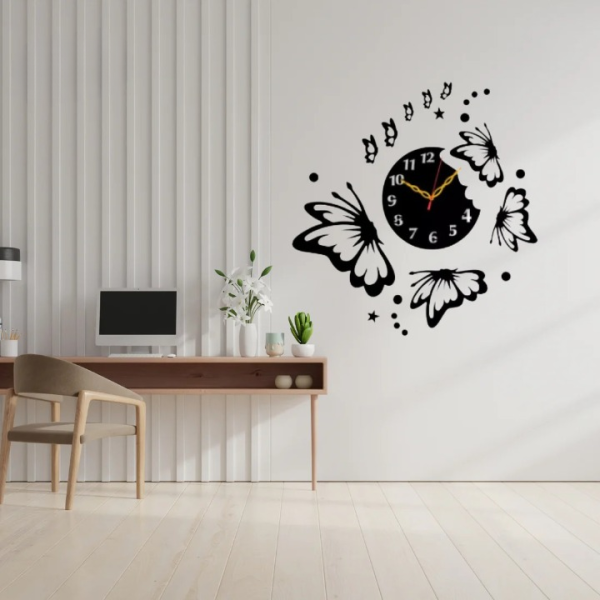3d Stars & Butterflies Wooden Wall Cock For Home Decor