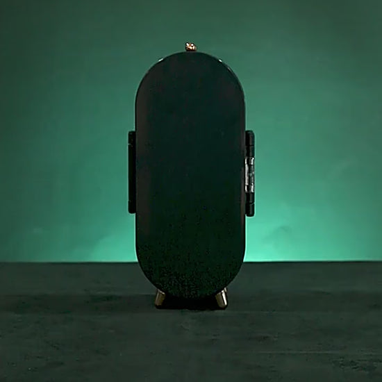 This stylish 4 Doors Foldable Jewelry Organizer With Mirror features a modern green and gold design, adding a touch of elegance to your vanity. Crafted from durable and waterproof ABS plastic, it offers ample storage space with 153 earring holes, 21 necklace grooves, and 3 long U-shaped compartments.